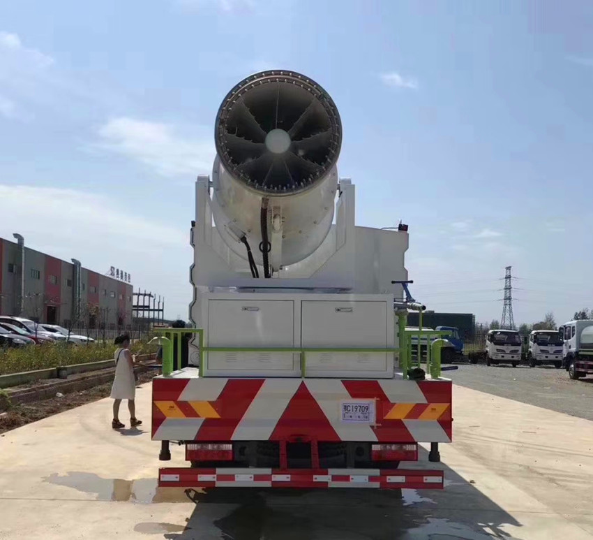 霧炮車專用配置: 配備全國評比質量第一的(日本技術)大功率專用灑水泵、取力器、球閥、濾網、輸水管道、灑水裝置等部件組成。水泵、取力器、球閥、濾網均為國家標準產品,具有性能優良,工作可靠、效率高、流量大、維修方便等特點。