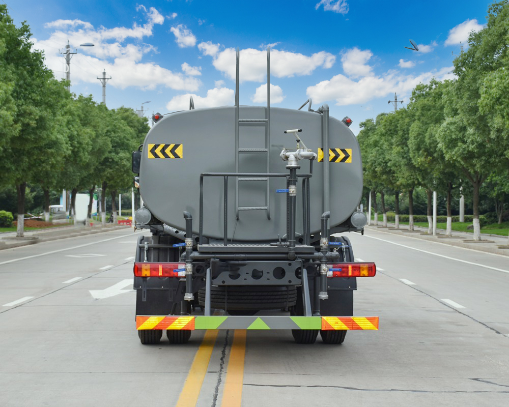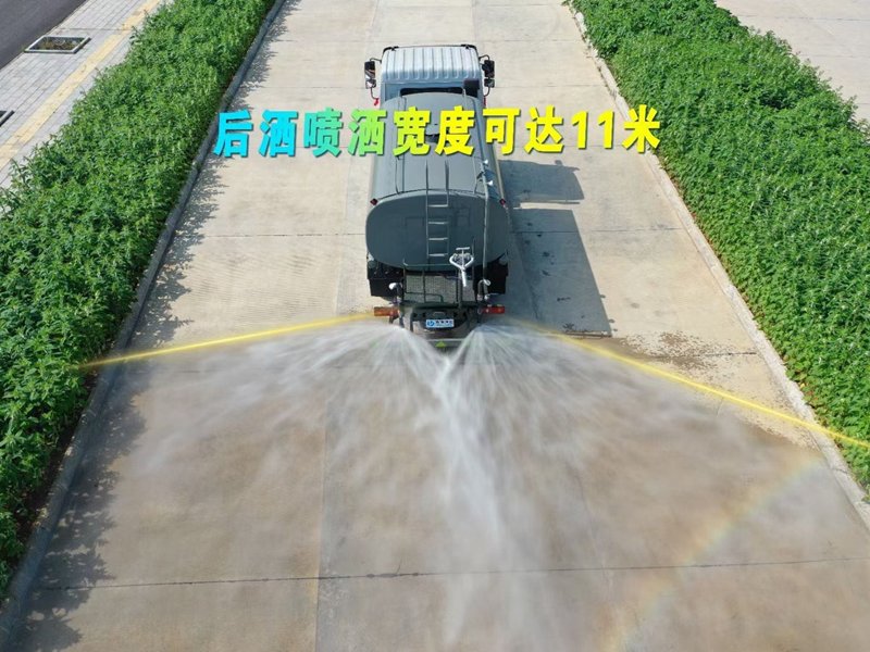 專(zhuān)用功能說(shuō)明: 用功能配置:罐體實(shí)際容積約為14.2立方米,采用武鋼優(yōu)質(zhì)碳鋼板卷壓成型。配備專(zhuān)用灑水泵,自吸自排,前噴后灑、側(cè)噴、后工作平臺(tái)及灑水高壓炮。灑水泵自吸高度為6米左右,整車(chē)灑水寬度14米左右,后工作平臺(tái)水炮可調(diào)成:直沖狀、大雨、中雨、小雨、毛毛雨,有效射程≥28米,整車(chē)帶接頭、水位計(jì),自流閥。后工作平臺(tái)主管路帶1寸澆花接口,附送2根3米水管,1個(gè)爬梯,兩側(cè)及后保險(xiǎn)杠。