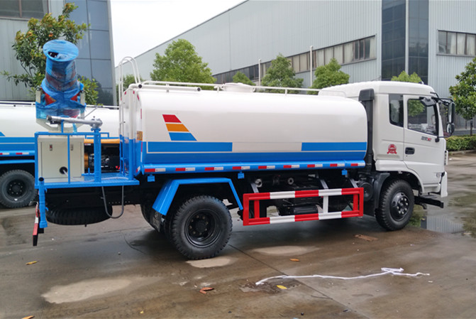 隨底盤選裝駕駛室;側噴為選裝件;品名:;密度:1000千克/立方米;有效容積:9.34立方米;軸距3950mm,罐體外形尺寸(×長軸×短軸)(mm):4600×2180×1390,外形尺寸長(mm)/前懸(mm)對應關系:7700/1250,7900/1450;軸距4500mm,罐體外形尺寸(×長軸×短軸)(mm):5200×2080×1290;外形尺寸長(mm)/前懸(mm)對應關系8250/1250,8450/1450;ABS型號為3631010-C2000,生產廠家為東科克諾爾商用車制動系統(十堰)有限公司;側面防護裝置材料材質:Q235,連接方式:焊接;后下部防護裝置材料材質:Q235,連接方式:焊接,斷面尺寸(×):30×120(mm),離地高度:500mm. 吸程7米,灑水寬度14-16米,射程25-30米,引水時間<5min,流量60m3/h。前沖()、后灑、帶側噴(花灑)、帶后工作平臺、平臺上安裝綠化灑水高炮(炮噴射形狀可調節:直沖、大雨、中雨、毛毛雨、霧狀、可連續調節,360°旋轉),配消防接口,自流閥,濾網,帶自吸自排功能配備大功率專用灑水泵,泵可自吸自排,安裝過濾網,帶消防接口,可通過消防栓進水,帶自流閥,隨車選裝20米綠化卷盤,可噴灑農藥,罐體金屬漆。罐體有橢圓和方圓罐兩種,可根據用戶的要求定做