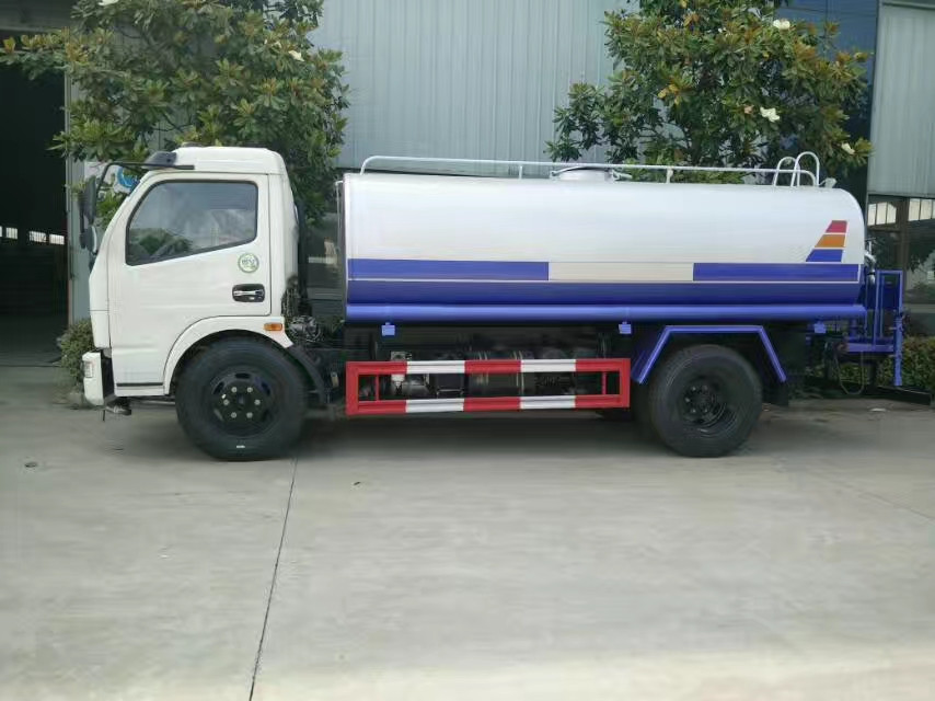 該車主要用于城鄉園林綠化灑水、噴藥等;主要裝置為水罐及泵。罐體有效容積5.7立方米,運輸介質:水,密度1000千克/立方米.罐體尺寸(長×長軸×短軸)(mm)為:3600×1820×1300;選裝風機樣式和不帶風機。側防護材料為Q235B,聯接方式為螺栓連接.后防護材料為Q235B,連接方式: 焊接連接,后部防護裝置斷面尺寸(寬×高)60×100(mm),后部防護離地高度:530mm.選裝新造型前面罩,前保險杠,前組合燈.ABS型號:ABS/ASR-24V-4S/4M,ABS廠家:襄陽東風隆誠機械有限責任公司.隨底盤選裝駕駛室.