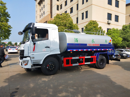 在談及到這臺運水車時,老張非常的高興,還會為市民們詳細的介紹它:這是一款專門為了滿足工程用水和抗旱用水而設計的車型,它能夠很好的滿足不同環境下綠化用水的需求。它的儲水容積高達11立方米,可以供幾百米綠化帶植物的澆灌所需。在為綠化帶植物澆水的方式上,它可以實現側噴,高位側花灑的功能。在給植物噴灑水時既可以以霧狀的形態來進行近距離的噴灑效果,同時也已將水變成柱狀狀態完成二十多米的遠距離的灑水。