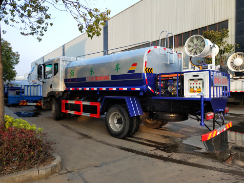 罐體容積:5立方,罐體采用機器壓板一次性成型技術,罐體加厚至4mm,采用先進旋邊機,罐體包罐機工藝保證了罐體制作的精度和美觀。全國獨有烤漆工藝,防腐除銹,多層底漆、面漆噴涂。 功能齊全,配備前沖、后灑、側噴、綠化高炮,采用優(yōu)質水泵,合理設計水路管道,氣控取力器,作業(yè)能力強,提高了車輛的使用效率。