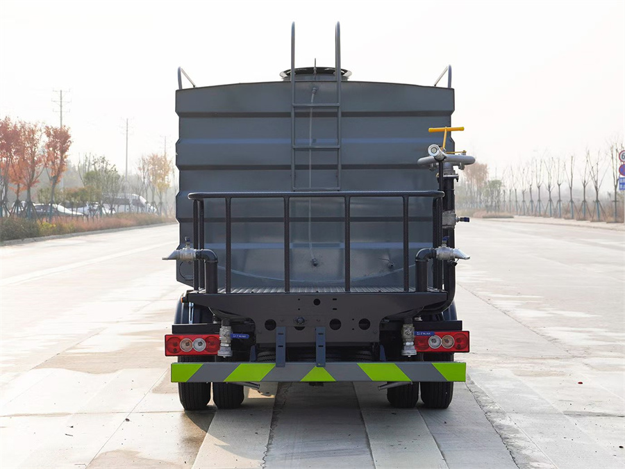 我公司產(chǎn)品標(biāo)配前噴(鴨嘴)、后沖、后灑、側(cè)噴、后置式工作平臺(tái),平臺(tái)上配置綠化水炮(可 360°旋轉(zhuǎn),既可以調(diào)成柱狀,也可以調(diào)成霧狀,更可以調(diào)成直沖狀、大雨、中雨、小雨、毛毛雨),配備優(yōu)質(zhì)大功率專用灑水泵(可自吸自排,可從河里或池塘抽水到罐體),取力器,雜物過(guò)濾網(wǎng),消防接口,自流球閥系統(tǒng)、取力器、球閥、濾網(wǎng)均為國(guó)家標(biāo)準(zhǔn)產(chǎn)品,主管道加粗,法蘭墊、法蘭盤加厚,大通徑球閥。整體具備性能優(yōu)良安全可靠、效率高、流量大、維修方便等特點(diǎn)。