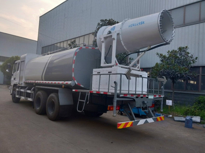 抑塵車吸程≧7米,灑水寬度≧14-16米,射程≧25-40米,引水時間<5min,流量60m3/h。前沖(噴)、后灑、帶側(cè)噴(花灑)、帶后工作平臺、平臺上安裝綠化灑水高炮(炮噴射形狀可調(diào)節(jié):直沖、大雨、中雨、毛毛雨、霧狀、可連續(xù)調(diào)節(jié),360°旋轉(zhuǎn)),配消防接口,自流閥,濾網(wǎng),帶自吸自排功能。配備大功率專用灑水泵,泵可自吸自排,安裝過濾網(wǎng),帶消防接口,可通過消防栓進水,帶自流閥,此車尾部加裝大功率農(nóng)藥噴灑炮,噴灑狀態(tài)霧狀,有效射程15-45米,外部平臺帶獨立的機組。