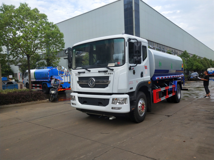 東風(fēng)10-15噸灑水車帶前沖(噴),后灑,側(cè)噴,配3米長抽水鋼絲塑料管兩根,用于抽水作業(yè)使用;罐后帶工作平臺(tái),平臺(tái)上帶安全護(hù)欄,裝高位綠化灑水炮一個(gè),灑水炮可全方位360度旋轉(zhuǎn),可連續(xù)調(diào)成直沖狀、大雨、小雨、毛毛雨等不同噴灑方式,調(diào)成直沖狀射程長度≥28m、高度≥12m,調(diào)成細(xì)雨?duì)钌涑虒挾取?5m;后工作平臺(tái)下用槽鋼連接焊有5mm厚保險(xiǎn)杠,提高灑水車的主動(dòng)安全性。