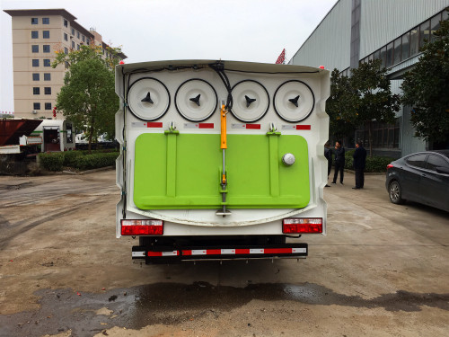 1. 方箱,碳鋼水箱,碳鋼垃圾箱,中置吸盤及副吸盤,五十玲57馬力副發動機,進口電磁閥組,匯博油缸,西門子或法國施耐德控制開關,CTOZ液壓閥組合電控開關,PLC一健控制系統,雙向操作按扭,廈門南超免維護自動離合器(保質期二年) 臺灣北玻免維護風機,手動泵應急系統,主發動機取力電液控制系統(車輛轉場后垃圾箱舉升,傾 卸垃圾,后門開啟時無需起動副發動機),先進的自動震塵系統進口防水材料進箱,自動脈沖清理功能,右/后工作影像。