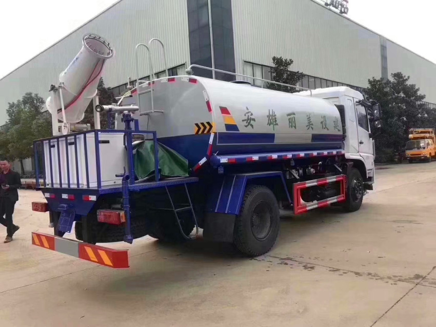 灑水車吸程≧7米,灑水寬度≧14-16米,射程≧25-40米,引水時間<5min,流量60m3/h。前沖(噴)、后灑、帶側噴(花灑)、帶后工作平臺、平臺上安裝綠化灑水高炮(炮噴射形狀可調節:直沖、大雨、中雨、毛毛雨、霧狀、可連續調節,360°旋轉),配消防接口,自流閥,濾網,帶自吸自排功能。配備大功率專用灑水泵,泵可自吸自排,安裝過濾網,帶消防接口,可通過消防栓進水,帶自流閥,此車尾部加裝大功率農藥噴灑炮,