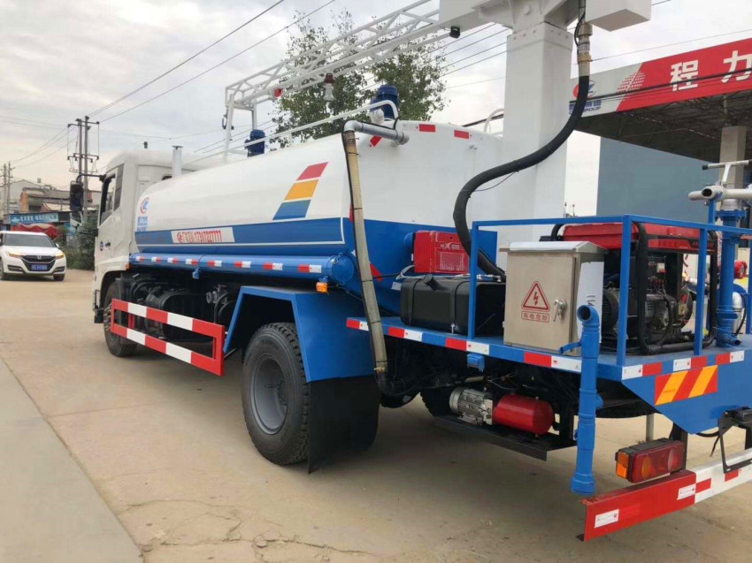 抑塵車吸程≧7米,灑水寬度≧14-16米,射程≧25-40米,引水時間<5min,流量60m3/h。前沖(噴)、后灑、帶側噴(花灑)、帶后工作平臺、平臺上安裝綠化灑水高炮(炮噴射形狀可調節:直沖、大雨、中雨、毛毛雨、霧狀、可連續調節,360°旋轉),配消防接口,自流閥,濾網,帶自吸自排功能。配備大功率專用灑水泵,泵可自吸自排,安裝過濾網,帶消防接口,可通過消防栓進水,帶自流閥,此車尾部加裝大功率農藥噴灑炮,噴灑狀態霧狀,有效射程15-45米,外部平臺帶獨立的機組。