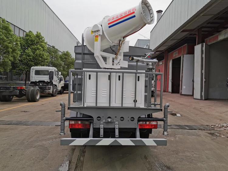 東風灑水車吸程≧7米,灑水寬度≧14-16米,射程≧25-40米,引水時間<5min,流量60m3/h。前沖(噴)、后灑、帶側噴(花灑)、帶后工作平臺、平臺上安裝綠化灑水高炮(炮噴射形狀可調節:直沖、大雨、中雨、毛毛雨、霧狀、可連續調節,360°旋轉),配消防接口,自流閥,濾網,帶自吸自排功能。配備大功率專用灑水泵,泵可自吸自排,安裝過濾網,帶消防接口,可通過消防栓進水,帶自流閥,此車尾部加裝大功率農藥噴灑炮,噴灑狀態霧狀,有效射程15-45米,外部平臺帶獨立的機組。