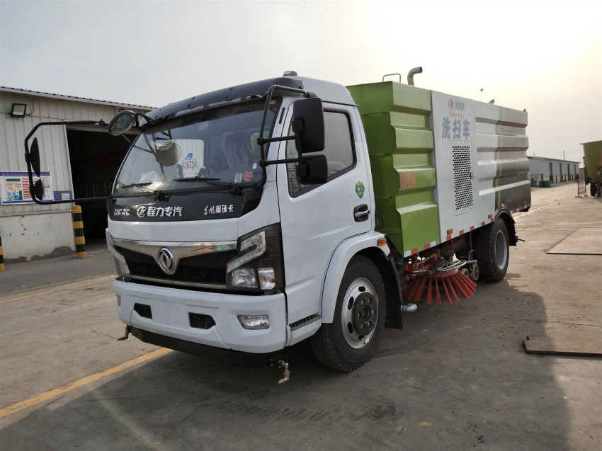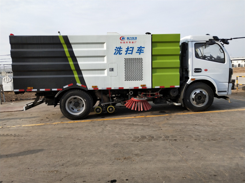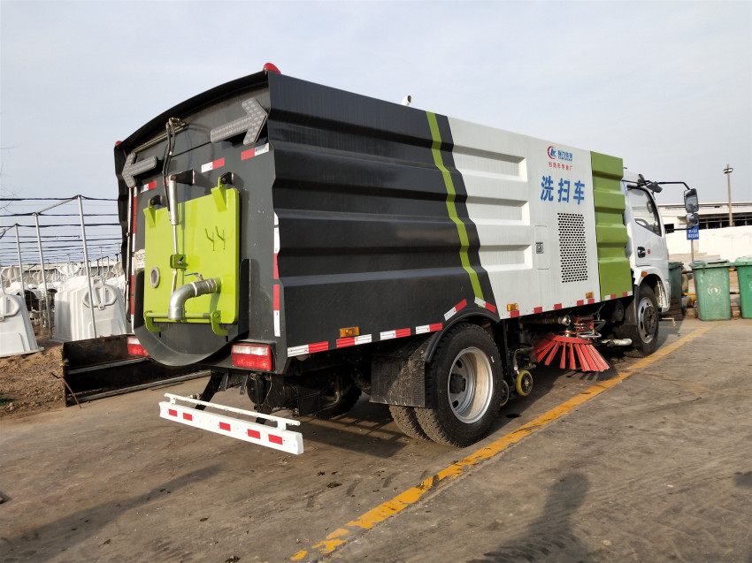 洗掃車具有路面清洗、路面清掃 路緣和路緣石立面洗刷、低壓沖洗、噴霧除塵等多功能。有“全洗掃”、 “左洗掃”、 “右洗掃”、 “全掃”、 多種作業模式可選擇。選擇“全洗掃”模式清洗廣場和路面,清洗效率高效果好,洗凈率達95%以上。選擇“左洗掃”或“右洗掃”模式清洗路面和路緣 。需要進行路面清掃或路面保潔作業時,可選擇掃路模式。需要噴霧除塵時,可開啟噴霧裝置,進行噴霧除塵作業。可以像灑水車一樣對路面進行低壓沖洗作業。