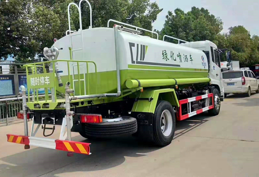 東風天錦灑水車吸程≧7米,灑水寬度≧14-16米,射程≧25-40米,引水時間<5min,流量60m3/h。前沖(噴)、后灑、帶側噴(花灑)、帶后工作平臺、平臺上安裝綠化灑水高炮(炮噴射形狀可調節:直沖、大雨、中雨、毛毛雨、霧狀、可連續調節,360°旋轉),配消防接口,自流閥,濾網,帶自吸自排功能。配備大功率專用灑水泵,泵可自吸自排,安裝過濾網,帶消防接口,可通過消防栓進水,帶自流閥,此車尾部加裝大功率農藥噴灑炮,噴灑狀態霧狀,有效射程15-45米,外部平臺帶獨立的機組。