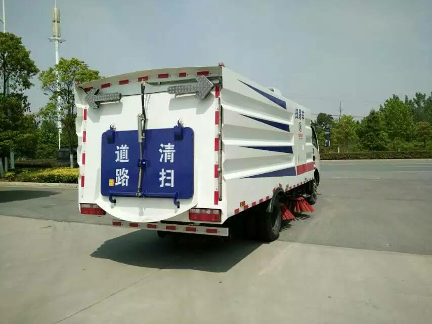 該掃路車采用東風(fēng)多利卡(軸距3308)國(guó)五二類底盤改裝,加裝副發(fā)動(dòng)機(jī)、風(fēng)機(jī)、清水箱、垃圾箱、左右立掃、后置吸盤,掃盤降塵系統(tǒng),液壓系統(tǒng)、專用裝置電控系統(tǒng)和副車架等改裝而成(可加裝前沖后灑)。