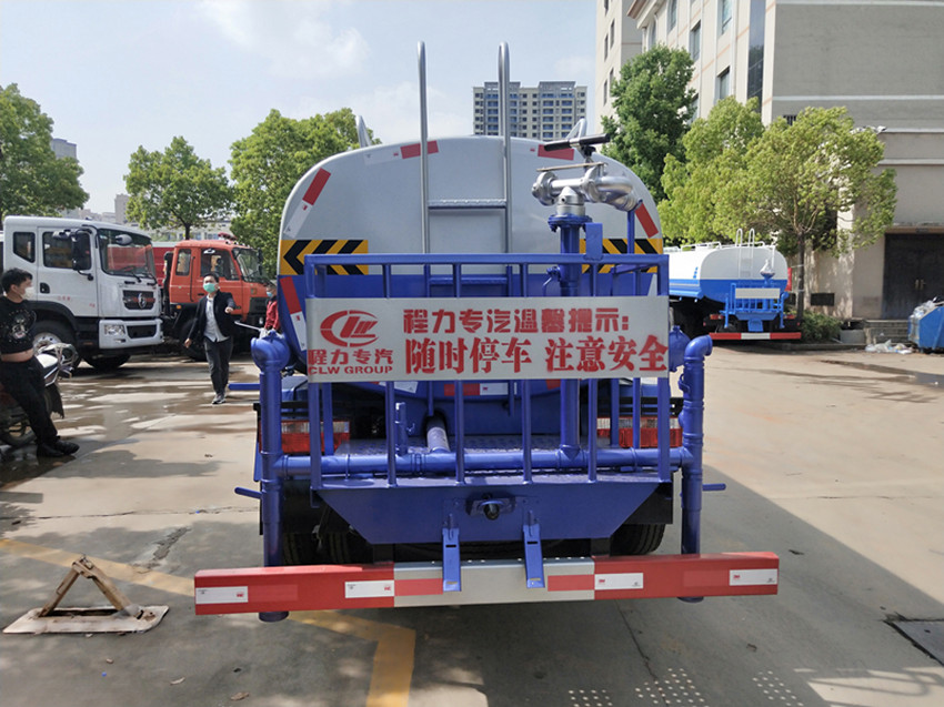 配備大功率專用灑水泵,泵可自吸自排,安裝過濾網,帶消防接口,可通過消防栓進水,帶自流閥,隨車選裝20米綠化卷盤,可噴灑農藥,罐體金屬漆。罐體有橢圓和方圓罐兩種,可根據用戶的要求定做