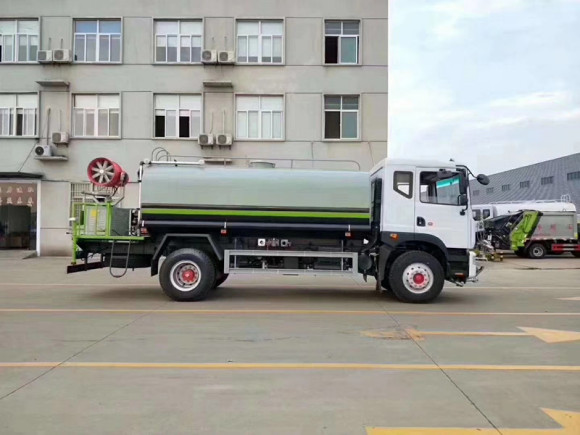 我國各地各生產廠灑水車價格各有不同。標準配置灑水車(綠化噴灑車、水罐車):前沖后灑、側噴;高位側花灑;后工作平臺,帶綠化灑水高炮,可調節成柱狀,射程≥28M;也可調節成霧狀,射程≥15M。可選配藥盤、打藥機。也可加裝藥盤、藥泵、罐內防腐防銹、多方位進出水接頭、電磁閥、氣動閥等先進設施,以滿足不同用戶需求。灑水車工作原理:是由發動機帶動變速箱,變速箱上安裝的取力器帶動灑水泵,灑水泵產生動力,將罐內的液體通過管網噴灑出去