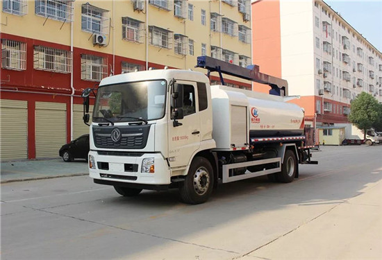 罐體為10立方圓形罐,罐體內部做防腐,前沖、后灑、側噴、高炮,抑塵噴灑桿(帶旋轉伸縮功能)。噴灑桿離地3.5-4.5米 ,后部平臺帶8KW副發電機組,罐體內部加兩個1.5KW電動馬達(帶攪拌功能)罐體噴漆上白下藍,平臺和噴灑桿藍色。遙控操作噴灑桿上下左右旋轉,平臺較上一臺車左右加寬20CM,電控箱安裝在后部平臺。