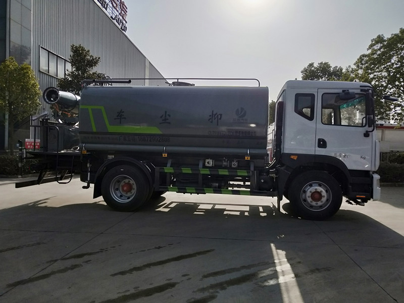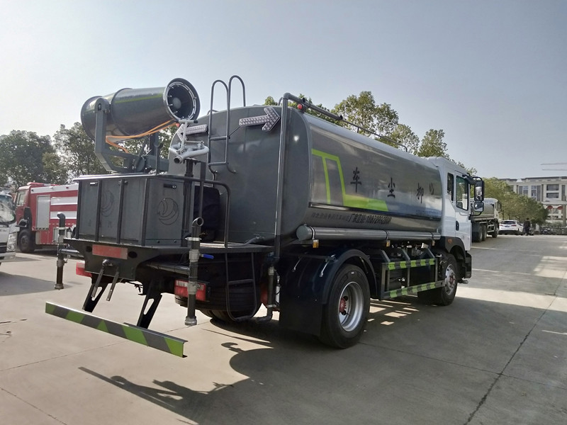 灑水車功能參數配置:配前沖,后灑,側噴,帶后工作平臺,尾部帶綠化灑水車高炮,射程在30米左右,可以調節水柱狀態