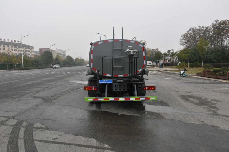 罐體用4MM碳鋼板制作,罐內隔板具有防波作用,以減低汽車行駛時罐體液體的沖擊。整車帶一個灑水泵(垂直吸程6米),灑水寬度14米,射程28米。多功能灑水車配備2個前沖(噴)(能將路面泥巴、塵土、垃圾沖干凈);2個后灑(能均勻地將水灑在路面,一次灑水寬度14米)、2個側噴(花灑)(能均勻地將路旁綠化帶澆灌)、帶1個后工作平臺,平臺上安裝1個綠化灑水高炮(灑水炮可全方位旋轉,可連續調成直沖狀、大雨、小雨、毛毛雨,霧狀可調節沖洗高大樹木),引水時間<5min,流量90m3/h。帶1個消防接頭,帶1個自流閥,1個過濾裝置。