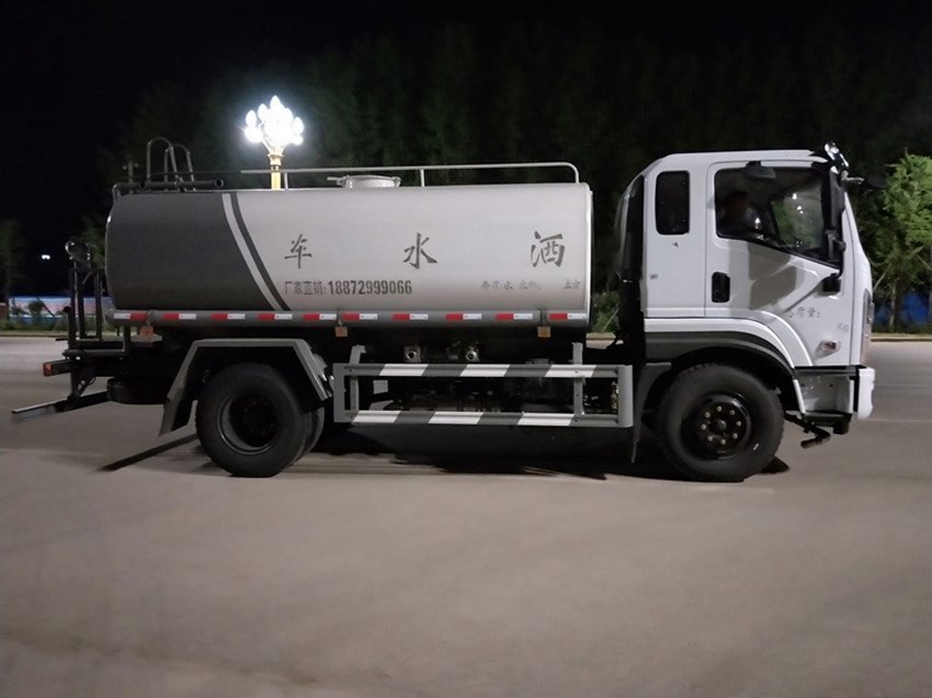 配備大功率專用灑水泵,泵可自吸自排,安裝過濾網(wǎng),帶消防接口,可通過消防栓進水,帶自流閥,隨車選裝20米綠化卷盤,可噴灑農藥,罐體金屬漆。罐體有橢圓和方圓罐兩種,可根據(jù)用戶的要求定做