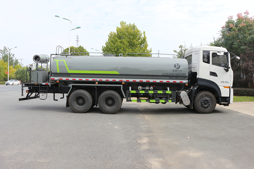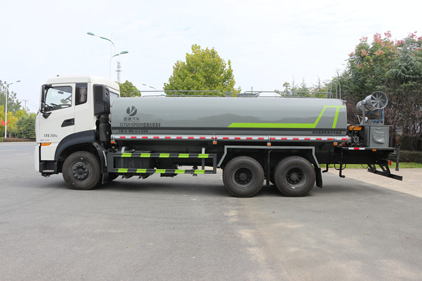 東風(fēng)天龍KL后雙橋國(guó)六灑水車主要功能有:前沖、后灑、側(cè)灑、高炮(可調(diào)成柱狀或霧狀、可噴灑農(nóng)藥)、帶過濾裝置、自吸自排、帶自流閥,帶消防接頭。帶有綠化水槍和可調(diào)式噴頭,噴頭角度可根據(jù)路面的寬窄進(jìn)行調(diào)整,廣泛用于環(huán)衛(wèi)、園林、公路等部門。灑水車罐體采用武鋼優(yōu)質(zhì)碳鋼板材制作,采用大型卷板機(jī)一次成型,罐體內(nèi)部采用防浪板結(jié)構(gòu),可有效阻止罐體內(nèi)部水的晃動(dòng)性,加強(qiáng)車輛使用穩(wěn)定和罐體使用壽命。封頭及罐體結(jié)合處采用先進(jìn)的弧形對(duì)接焊接工藝。東風(fēng)天龍KL后雙橋國(guó)六灑水車,該車的改裝部分,設(shè)計(jì)上突出了多功能和人性化理念,基本做到了一車多用,功能齊全,美觀大方;在制作上選用的配套件都是國(guó)內(nèi)同行業(yè)中的優(yōu)質(zhì)產(chǎn)品,對(duì)制作工藝進(jìn)行嚴(yán)格把關(guān);在安全性能上,該車在試制和檢驗(yàn)階段對(duì)環(huán)保、燈光、制動(dòng)、組合分配,側(cè)防護(hù)等項(xiàng)都進(jìn)行了嚴(yán)格的檢測(cè),并進(jìn)行了49項(xiàng)技術(shù)參數(shù)、5千公里路試檢測(cè)。