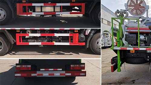 該車專用裝置為抑塵霧炮,用于礦場(chǎng),露天堆場(chǎng)及爆破現(xiàn)場(chǎng)等的噴霧抑塵.此車僅采用 3365軸距.側(cè)防護(hù)及后下部防護(hù)裝置均采用Q235材質(zhì),均采用焊接連接,后下部防護(hù)尺寸: 50×150(mm),離地面高度380mm;ABS系統(tǒng)型號(hào)/廠家為VIE ABS-Ⅱ/浙江萬安科技 股份有限公司.隨底盤選裝駕駛室.,選裝箱體外觀樣式 |