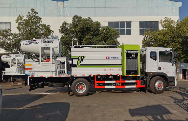 性能簡介:吸程≧7米,灑水寬度≧14-16米,射程≧25-40米,引水時間<5min,流量60m3/h。前沖(噴)、后灑、帶側噴(花灑)、帶后工作平臺、平臺上安裝綠化灑水高炮(炮噴射形狀可調節:直沖、大雨、中雨、毛毛雨、霧狀、可連續調節,360°旋轉),配消防接口,自流閥,濾網,帶自吸自排功能。安裝30-80米霧炮,霧炮可以遙控操作,可以手動操作,按霧炮大小配多大功率發電機