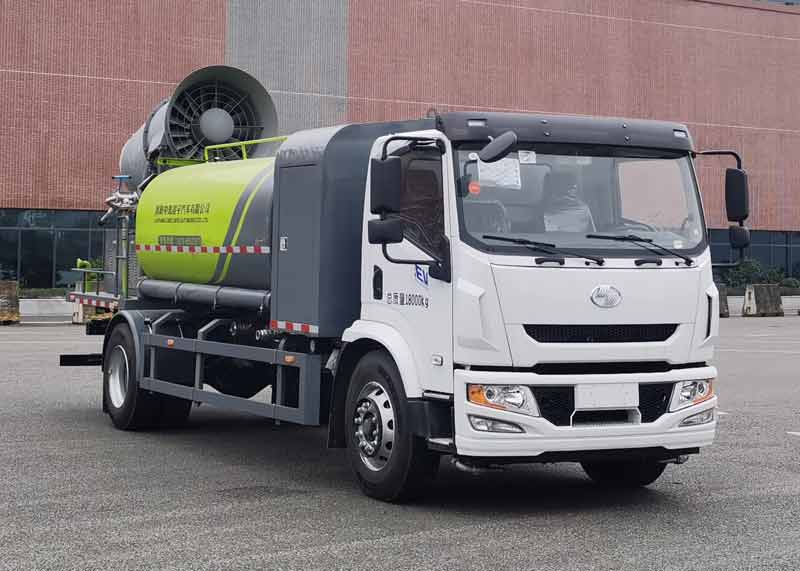 躍進牌霧炮車該車僅選用底盤5200mm軸距;整車長=前懸+軸距+后懸+后伸(mm):9520=1230+5200+2300+790. 儲能裝置種類/生產企業:磷酸鐵鋰電池/寧德時代新能源科技股份有限公司;驅動電機額定功率/峰值功率:100kW/ 185kW;ABS型號為:VIE ABS-Ⅱ,生產企業為:浙江萬安科技股份有限公司;側防護裝置材料為Q235-A,與車架采用 螺栓連接;后防護裝置材料為碳鋼,與車架采用螺栓連接,截面尺寸:120×60(mm),離地高度:480(mm);選裝霧炮裝置 型式.該車專用裝置為霧炮裝置,主要用于道路、廠區抑塵作業. |