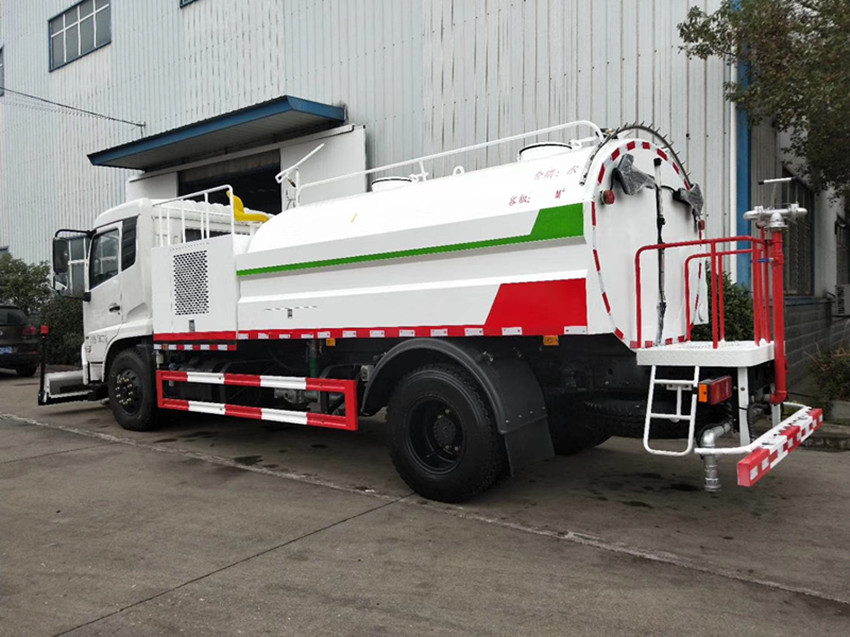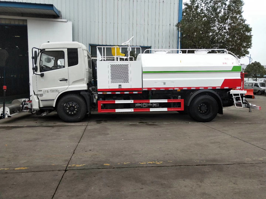 灑水車吸程≧7米,灑水寬度≧14-16米,射程≧25-40米,引水時間<5min,流量60m3/h。前沖(噴)、后灑、帶側噴(花灑)、帶后工作平臺、平臺上安裝綠化灑水高炮(炮噴射形狀可調節:直沖、大雨、中雨、毛毛雨、霧狀、可連續調節,360°旋轉),配消防接口,自流閥,濾網,帶自吸自排功能。配備大功率專用灑水泵,泵可自吸自排,安裝過濾網,帶消防接口,可通過消防栓進水,帶自流閥,隨車選裝20米綠化卷盤,可噴灑農藥,罐體金屬漆。罐體有橢圓和方圓罐兩種,可根據用戶的要求定做
