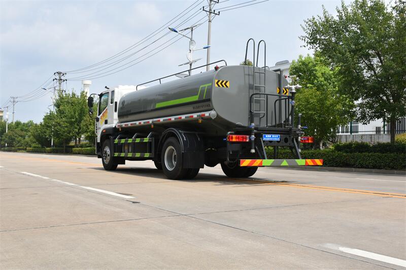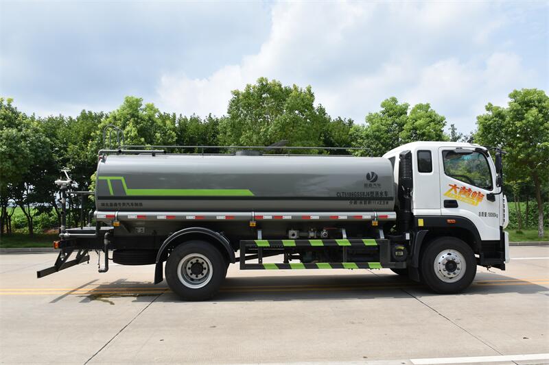 福田15噸灑水車標(biāo)配前噴(鴨嘴)、后沖、后灑、側(cè)噴、后置式工作 平臺,平臺上配置綠化水炮(可 360°旋轉(zhuǎn),既可以調(diào)成柱狀,也可 以調(diào)成霧狀,更可以調(diào)成直沖狀、大雨、中雨、小雨、毛毛雨),配 備優(yōu)質(zhì)大功率專用灑水泵(可自吸自排,可從河里或池塘抽水到罐體), 取力器,雜物過濾網(wǎng),消防接口,自流球閥系統(tǒng)、取力器、球閥、濾網(wǎng) 均為國家標(biāo)準(zhǔn)產(chǎn)品,主管道加粗,法蘭墊、法蘭盤加厚,大通徑球閥。 整體具備性能優(yōu)良安全可靠、效率高、流量大、維修方便等特點(diǎn)。 二.產(chǎn)品配置 1.底盤配置: 發(fā)動機(jī)玉柴 200 馬力(四缸),法士特 8 檔變速箱,軸距 4500,前 橋 4.5T,后橋 10T,10.00 鋼絲胎,斷氣剎,空調(diào),電動玻璃,ABS。