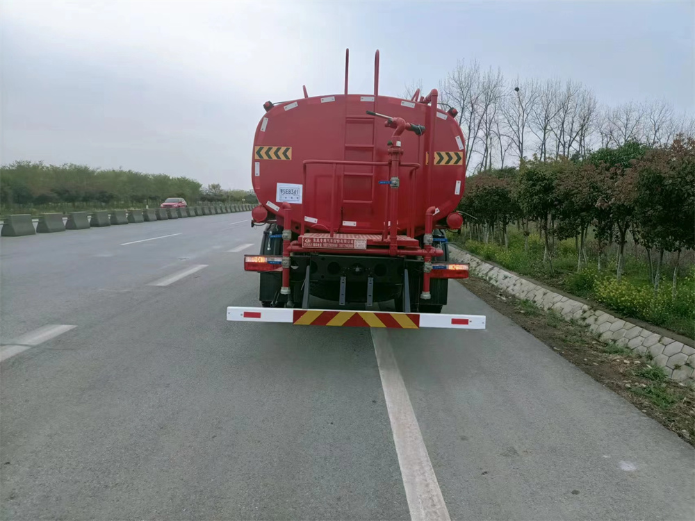 灑水車產(chǎn)品標(biāo)配前噴(鴨嘴)、后沖、后灑、側(cè)噴、后置式工作 平臺(tái),平臺(tái)上配置綠化水炮(可 360°旋轉(zhuǎn),既可以調(diào)成柱狀,也可 以調(diào)成霧狀,更可以調(diào)成直沖狀、大雨、中雨、小雨、毛毛雨),配 備優(yōu)質(zhì)大功率專用灑水泵(可自吸自排,可從河里或池塘抽水到罐體), 取力器,雜物過(guò)濾網(wǎng),消防接口,自流球閥系統(tǒng)、取力器、球閥、濾網(wǎng) 均為國(guó)家標(biāo)準(zhǔn)產(chǎn)品,主管道加粗,法蘭墊、法蘭盤加厚,大通徑球閥。 整體具備性能優(yōu)良安全可靠、效率高、流量大、維修方便等特點(diǎn)