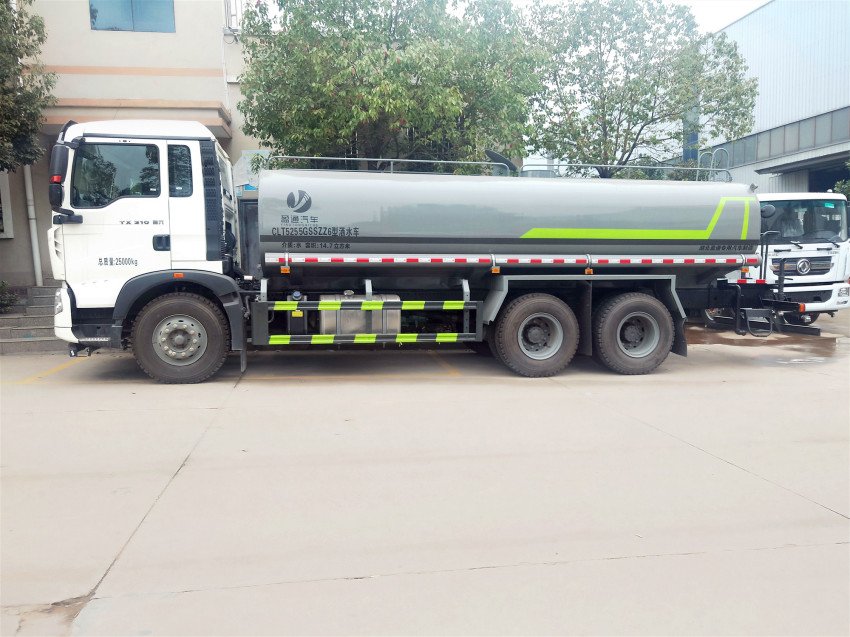 重汽20噸灑水車罐體為橢圓形或方形,采用武鋼優(yōu)質(zhì)碳鋼板制成,罐體倉內(nèi)1.5米一道隔板,具有防波防蕩作用,還可按用戶要求進(jìn)行專業(yè)的防腐防銹處理,罐體外可用發(fā)泡或巖棉加裝保溫層起保溫功能。可選裝藥盤,藥泵、高壓噴藥設(shè)備、非車帶泵動(dòng)力等.、罐內(nèi)防腐防銹、多方位進(jìn)出水接頭、氣動(dòng)閥、警燈等先進(jìn)設(shè)施,以滿足不同用戶需求。