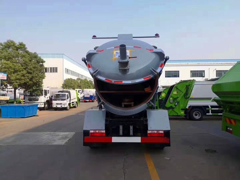 介質:餐廚垃圾,密度:800千克/立方米,罐體有效容積:8.13立方米,罐體外形尺寸(直段長×直徑)(mm):3800×1600。該車右側面配備垃圾上料裝置,用于作收集餐廚垃圾。防護材料:Q235A碳鋼,連接方式:左右側面及后下部防護均采用焊接連接,后部防護斷面尺寸(mm):120×50,后部防護離地高度(mm):400 ABS系統型ABS/ASR-24V-4S/4M,ABS系統生產廠家襄陽東風隆誠機械有限責任公司。此整車長/軸距對應關系為(mm):6850/3800,7000/3950,7100/4050,7150/4100,7450/4400。當軸距為(3800mm,3950mm),整備質量為5600kg,當軸距為(4050mm,4100mm,4400mm),整備質量為6400kg。隨底盤選裝駕駛室。