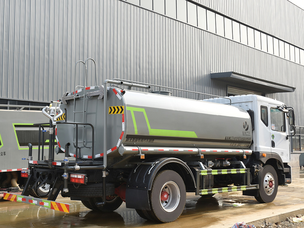 灑水車又稱為噴灑車、多功能灑水車、園林綠化灑水車。灑水車 適合于各種路面沖洗,樹木、綠化帶、草坪綠化,道路、廠礦企業施工 建設,高空建筑沖洗。灑水車也可以作為運水車使用,最常見的車型 有環衛灑水車、多功能灑水車、綠化灑水車幾大類。 我公司產品標配前噴(鴨嘴)、后沖、后灑、側噴、后置式工作 平臺,平臺上配置綠化水炮(可 360°旋轉,既可以調成柱狀,也可 以調成霧狀,更可以調成直沖狀、大雨、中雨、小雨、毛毛雨),配 備優質大功率專用灑水泵(可自吸自排,可從河里或池塘抽水到罐體), 取力器,雜物過濾網,消防接口,自流球閥系統、取力器、球閥、濾網 均為國家標準產品,主管道加粗,法蘭墊、法蘭盤加厚,大通徑球閥。 整體具備性能優良安全可靠、效率高、流量大、維修方便等特點。