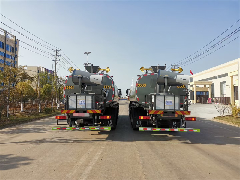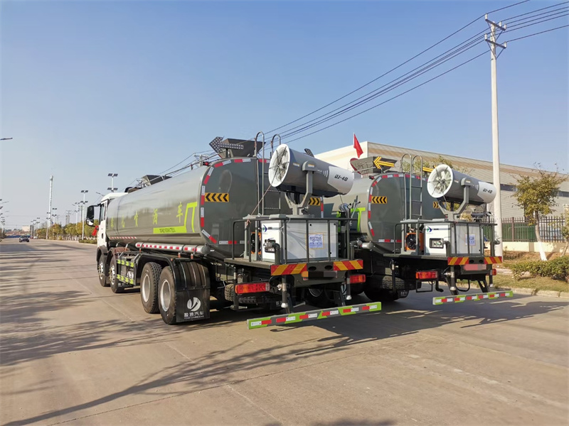 縱昂牌CLT5311TDYZZ6型多功能抑塵車(chē)標(biāo)配前噴(鴨嘴 ) 、后 對(duì)沖、后灑、側(cè)噴、后置式工作平臺(tái),平臺(tái)上配置綠化水炮(可 360°旋 轉(zhuǎn), 既可以調(diào)成柱狀,也可以調(diào)成霧狀),配備優(yōu)質(zhì)大功率專(zhuān)用灑水泵(可自吸 自 排,可從河里或池塘抽水到罐體),取力器,雜物過(guò)濾網(wǎng),消防接口,自流球閥 系統(tǒng)、取力器、球閥、濾網(wǎng)均為國(guó)家標(biāo)準(zhǔn)產(chǎn)品,主管道加粗,法蘭墊、法蘭盤(pán) 加厚,大通徑球閥。整體具備性能優(yōu)良安全可靠、效率高、流量大、維修方便 等特點(diǎn)。