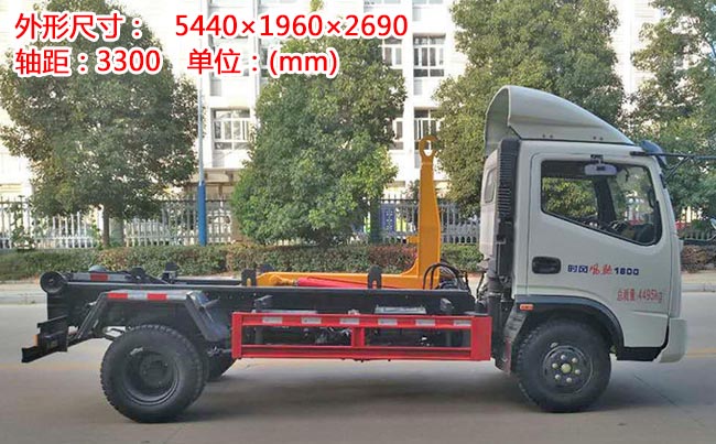 配套5~6立方米勾臂垃圾箱,高強度主勾臂,雙缸液壓,國產液壓油缸、油泵、多路閥(駕駛室外部操作)、尾部帶滾輪,箱體鎖緊裝置。