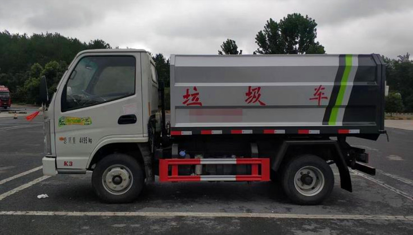 箱體容積3~4立方米,碳鋼邊三底四,國產油泵、多路閥、取力器、油缸,卸料方式為底部雙杠液壓舉升自卸,駕駛室外操作,鐵桶掛架,后門機械鎖緊,手動開門,可選液壓開門。