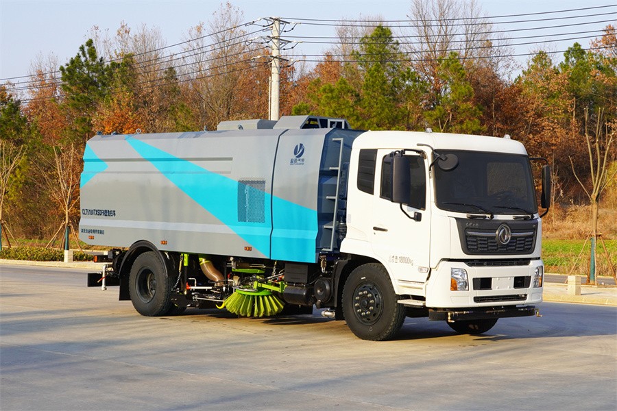 國六東風天錦洗掃車采用東風天錦DFH1180EX8型底盤,達到國Ⅵ排放,垃圾箱容積9立方米,水箱容積7立方米,是自動化程度高的道路清掃車