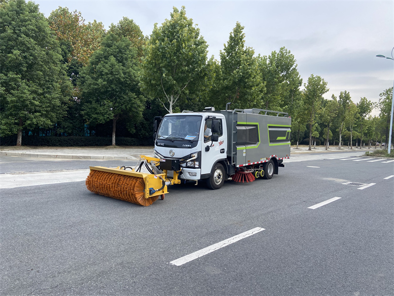 CLT5071TXSEQ6 型清掃車功能介紹 1. 東風多利卡洗掃車采用洗,掃,吸,混合的方式收集垃圾,濕式除塵、電液 PLC 一鍵控制,液壓傾翻卸料的作業方式對路面進行清掃作業。 2. 采用副發動機專門驅動風機和液壓系統,保證行駛過程中能繼續工作,保證 清掃過程的連續性。 3. 采用“中置兩掃盤 +噴霧降塵+中置寬幅吸嘴(內置高壓噴桿及兩側高壓噴 桿)”的結構布局,對泥濘路面有更好的清潔效果,清掃過程中砂石不在飛 濺揚塵,此布局便于清掃裝置與吸盤的調整與維護,轉場作業時整車通過性 好。 4. 副發動機與風機之間的傳動設置設有自動離合器,可保證副發動機空載啟動 和停機時與風機的自動脫離,降低了對副發動機的沖擊,提高了副發動機的 工作可靠性和使用壽命。 5. 掃盤有遇障礙自動避讓保護功能和自動復位功能,遇到障礙自動回縮,越過 障礙自動回位。 6. 掃盤轉速可根據各種不同的清掃工況來調整轉速,能保證在各種污染狀況下 都有良好的清掃效果 7. 采用先進,高效的專用風機和可隨路面自動找平的全浮動式吸嘴,清掃效果 好,使用壽命長。