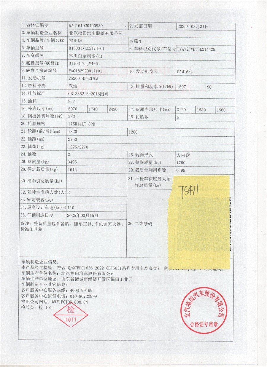 廂體采用內(nèi)外玻璃鋼板材制作,中間填充8cm 厚高密度保溫材料,底板選用加厚型防滑花紋鋁板,鋁合金型材包邊,不銹鋼門鎖件,后雙開門,帶單側(cè)開門,匹配零下15度制冷機組。其余按冷藏車標配制作。提供機動車上戶手續(xù)(機動車合格證、上戶發(fā)票、車輛保修手冊、隨車工具)。