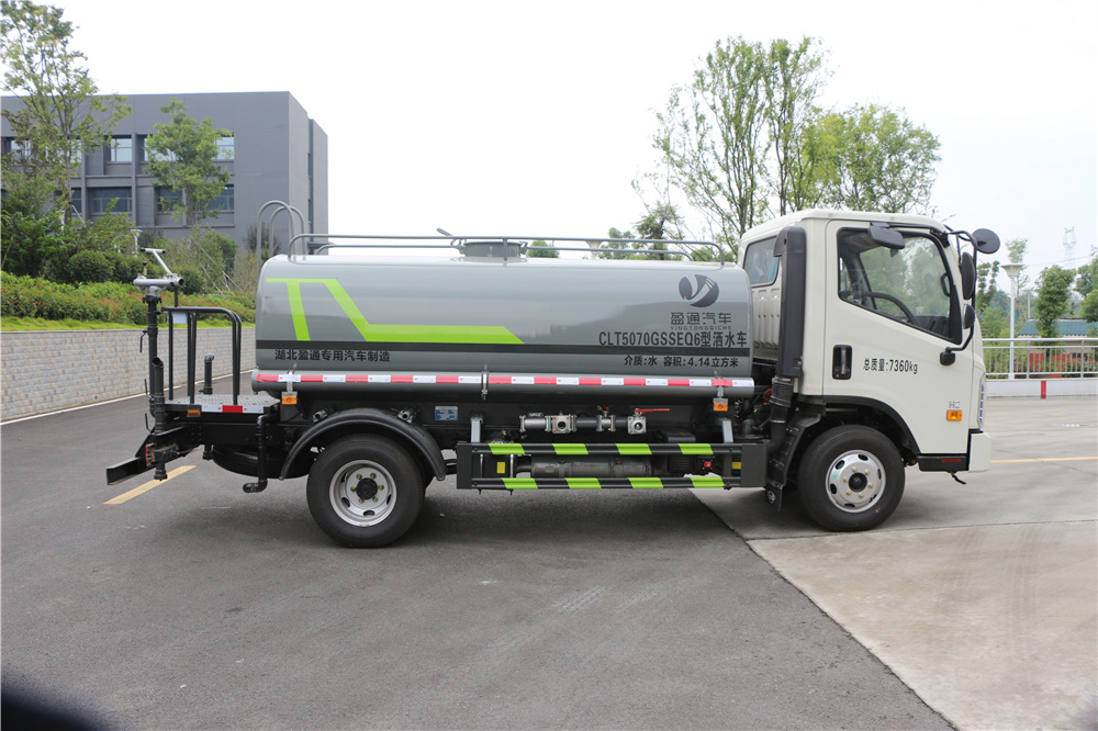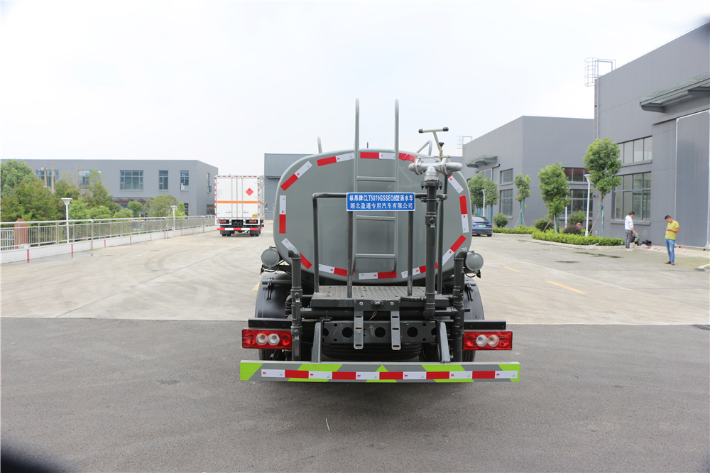 專用功能配置:罐體實際容積為5立方米,采用武鋼優(yōu)質(zhì)碳鋼板卷壓成型。配備專用灑水泵,自吸自排,前噴后灑、側(cè)噴、后工作平臺及灑水高壓炮。灑水泵自吸高度為6米左右,整車灑水寬度14米左右,后工作平臺水炮可調(diào)成:直沖狀、大雨、中雨、小雨、毛毛雨,有效射程≥28米,整車帶接頭、水位計,自流閥及自吸功能。后工作平臺主管道帶1寸澆花接口,附送2根3米水管,1個爬梯,兩側(cè)及后保險杠。