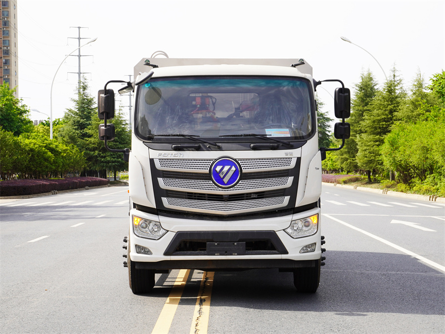 電動餐廚垃圾車該車用于餐廚垃圾收集清運,主要專用裝置為垃圾收集箱和提升機構;卸料方式為后卸式;側防護材料為:鋁合金+Q235碳鋼,側防護連接方式為:螺栓+焊接連接;后防護材料為:Q235碳鋼,后防護連接方式為:螺栓連接;后部防護截面尺寸(mm):120×50,后部防護離地高度(mm):460;ABS型號/生產企業: ABS-E/威伯科汽車控制系統(中國)有限公司,ABS-E/采埃孚商用車系統(青島)有限公司;電池種類/總成生產企業/單體生產企業:磷酸鐵鋰電池/寧德時代新能源科技股份有限公司/寧德時代新能源科技股份有限公司;電機型號/生產企業:FTTB080C/北汽福田汽車股份有限公司,額定功率:80kW,峰值功率:160kW;TZ375XSSF-SZF611/陜西法士特齒輪有限責任公司,額定功率:105kW,峰值功率:175kW,FTTBP210A/北汽福田汽車股份有限公司,額定功率:120kW,峰值功率:210kW;軸距(mm)/后懸(mm)對應關系為:4800/2300,4500/2600。
