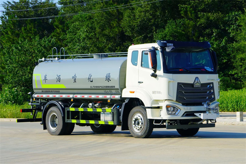 重汽豪沃12-15噸灑水車產品標配前噴(鴨嘴)、后沖、后灑、側噴、后置式工作 平臺,平臺上配置綠化水炮(可 360°旋轉,既可以調成柱狀,也可 以調成霧狀,更可以調成直沖狀、大雨、中雨、小雨、毛毛雨),配 備優質大功率專用灑水泵(可自吸自排,可從河里或池塘抽水到罐體), 取力器,雜物過濾網,消防接口,自流球閥系統、取力器、球閥、濾網 均為國家標準產品,主管道加粗,法蘭墊、法蘭盤加厚,大通徑球閥。 整體具備性能優良安全可靠、效率高、流量大、維修方便等特點